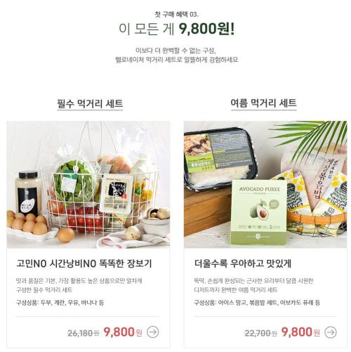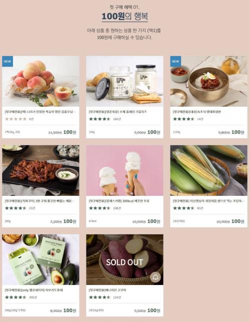 첫구매딜로 100원짜리 제품들이 여러개 있고 9800원짜리 세트도 두개 있는데,