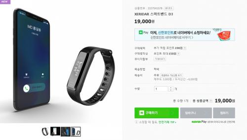 네이버쇼핑에서 XERIDAR 스마트밴드 D3를 19000원에 무료배송으로 팔고있습니다. 샤오미 미밴드 2가격이랑 비슷