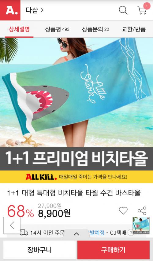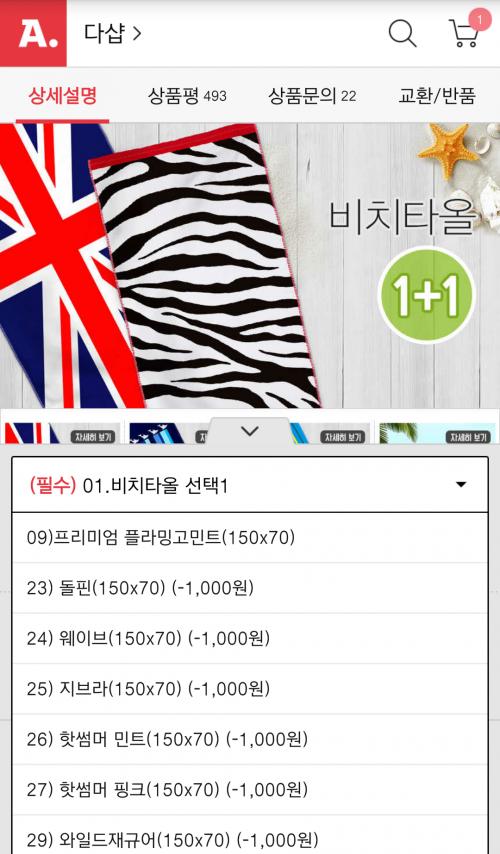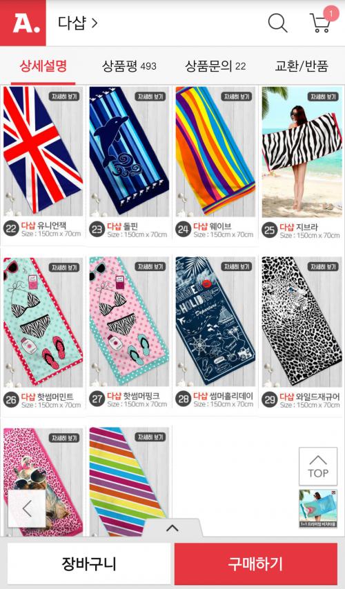 [옥션] 1+1 대형 비치타올 타월 수건 바스타올 (6,900원/무료배송)