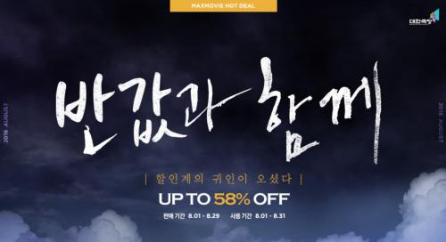 맥스무비에서 대한극장 반값과 함께 영화티켓을 8000원부터 무료배송으로 팔고있습니다. 예전에는 분명 1인 + 팝