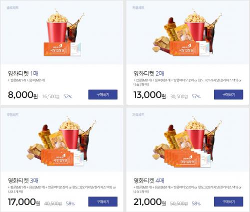 콘세트가 6천원?7천원?으로 사곤 했었는데 올랐는지 8천원부터 있네요 ㅠㅠ 그래도 티켓 + 팝콘 + 음료 세트가 8천