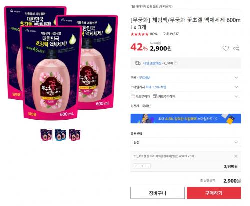 옥션에서 무궁화 꽃초겔 액체세제 체험팩 600ML X 3개를 2900원에 무료배송으로 팔고있습니다. 액체세제 체험팩