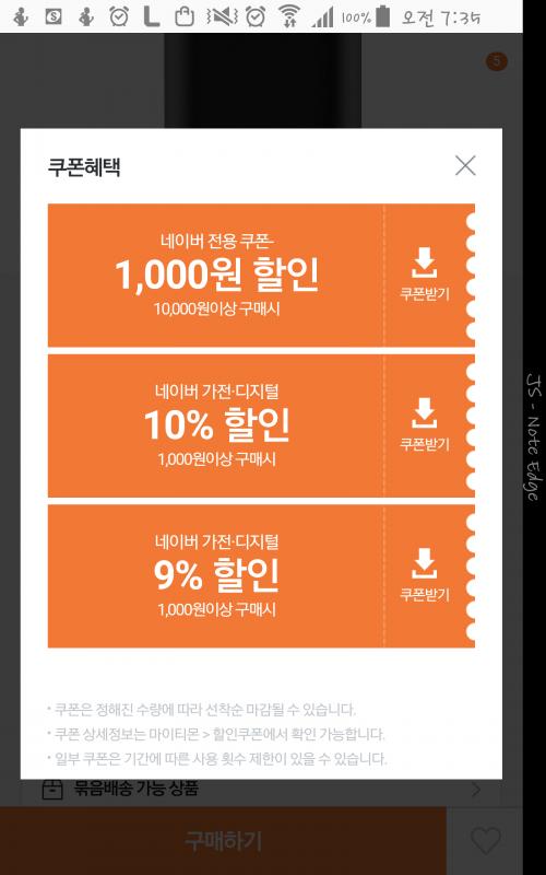 쿠폰이 끝났는지 10% 는 안보이고1000 원만 적용 되네요; | ||