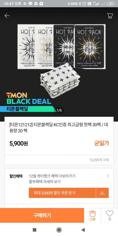 헛 밑에 핫팩 올리고 좀더 찾으니 티몬에 80g 30개에 5900 하네요 그리고 차이결제시 1만원이상 2000원 할인해서 2세트 60개 9800원구입요 개당163원에 구입했네요