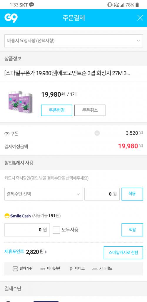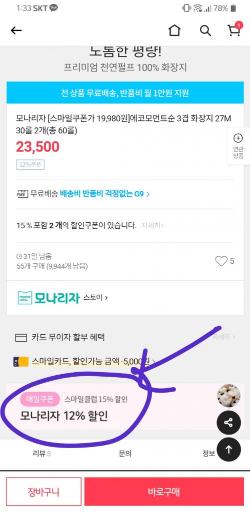스마일클럽 쿠폰 적용하면 60롤 가격 2만원도 안합니다