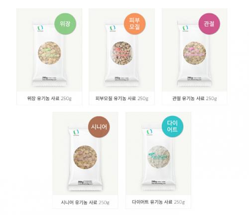 메이커는 잘 모르겠는데 유기농사료 샘플이 990원이면 엄청 싸네요.