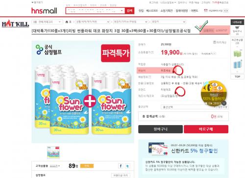 [홈앤쇼핑] 삼정펄프 휴지 25미터*30롤, 3겹,30롤*39=90롤 (19,900원/무료배송)