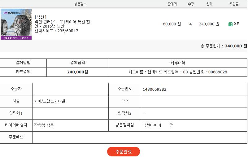 참고로 전 카니발 오너라 236 / 60 / 17 주문했고요