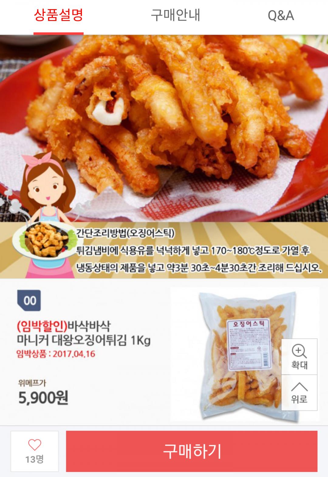 마니커 대왕오징어튀김 1kg 네이버쇼핑 검색하면 만원정도 판매되는 상품입니다.