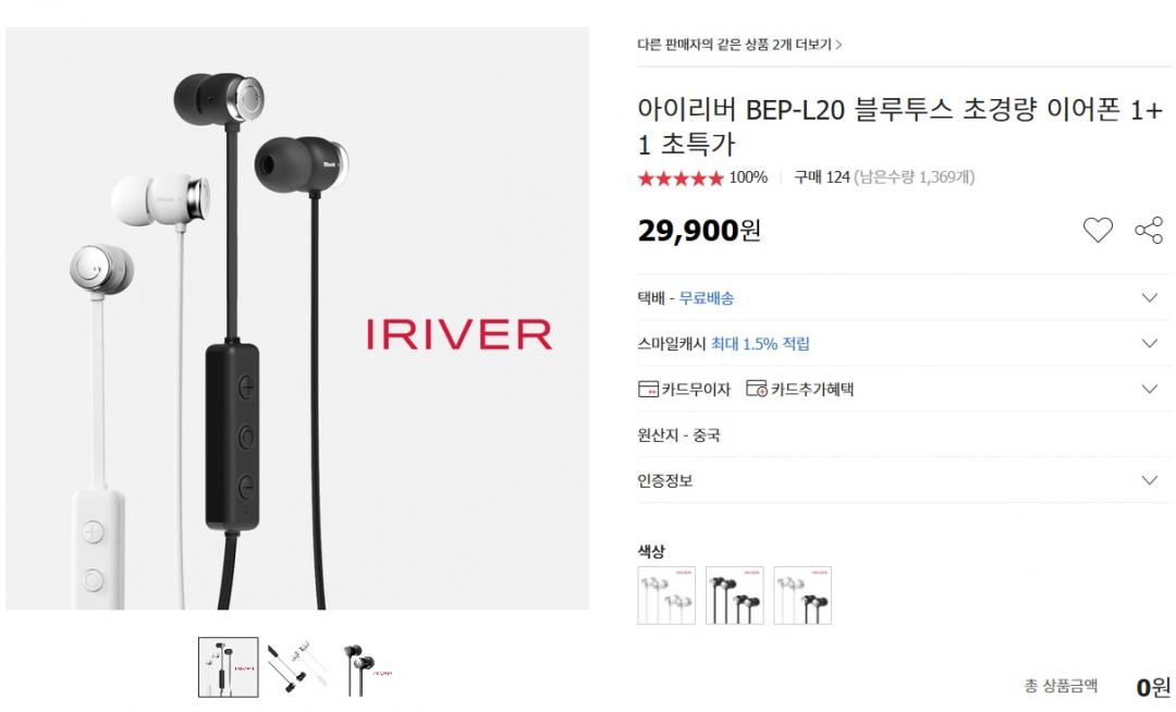 옥션에서 아이리버 블루투스 이어폰을 1+1 구성으로 500개 한정판매로 29900원에 무료배송으로 팔고있습니다.