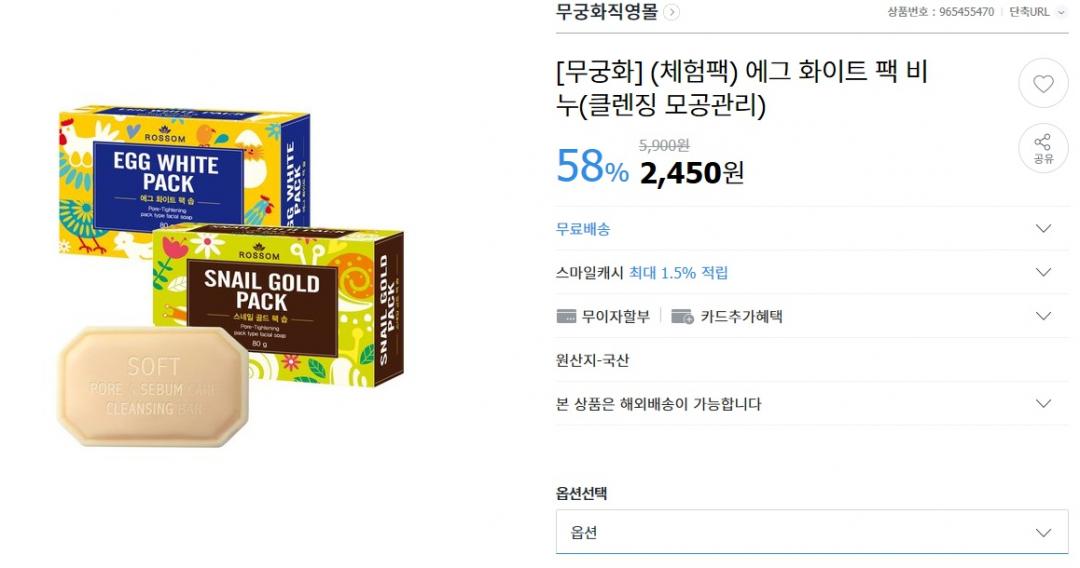 지마켓에서 무궁화 에그비누를 2450원에 무료배송으로 팔고있습니다. 네이버 지식쇼핑 최저가 찾아보니 원래는 개