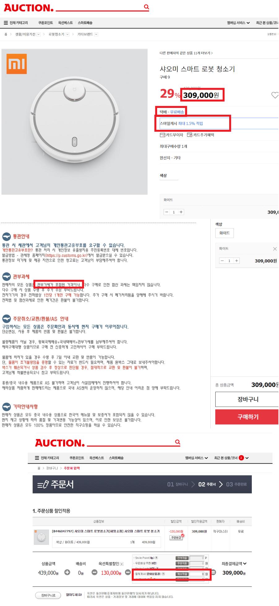 위가 오리지널(297,000원), 아래가 기존(309,000원) 설명입니다.