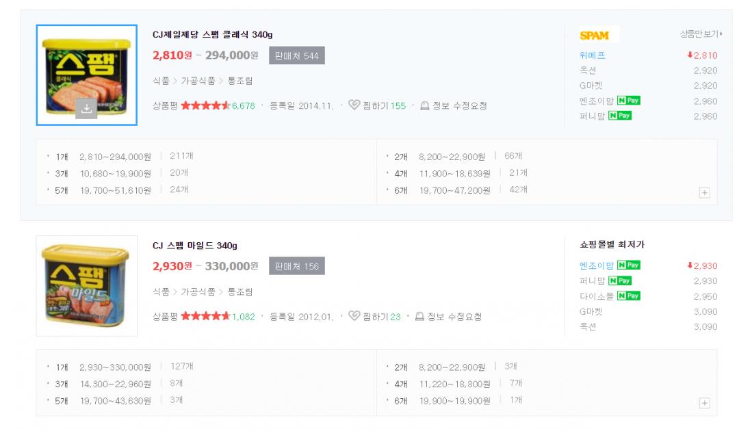 [G마켓] 스팸 340g x 6개 (16,340원/무료)