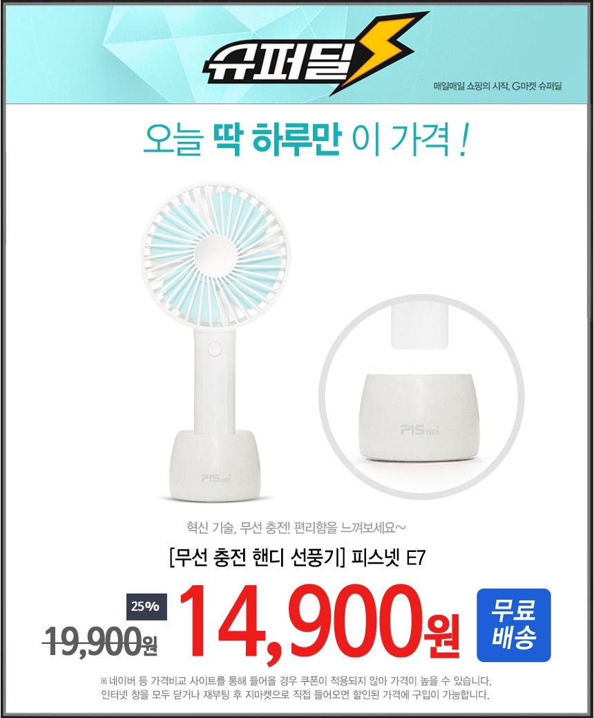 지마켓에서 피스넷 E7 무선충전 핸디형 선풍기 3+1을 14900원에 무료배송으로 팔고있습니다. 인터넷 최저가 19900