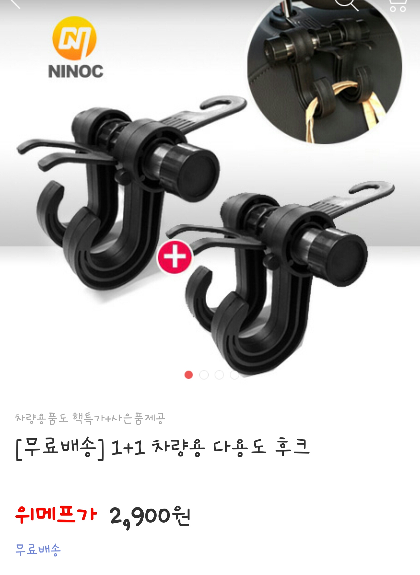 [위메프] 1+1 차량용 다용도 후크 (2,900/0)