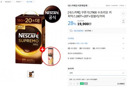 [지마켓] 네스카페 수프리모 200T + 한정판 아트텀블러 (19,900원/무료)/모든할인적용시 16,110원 > 이건어때