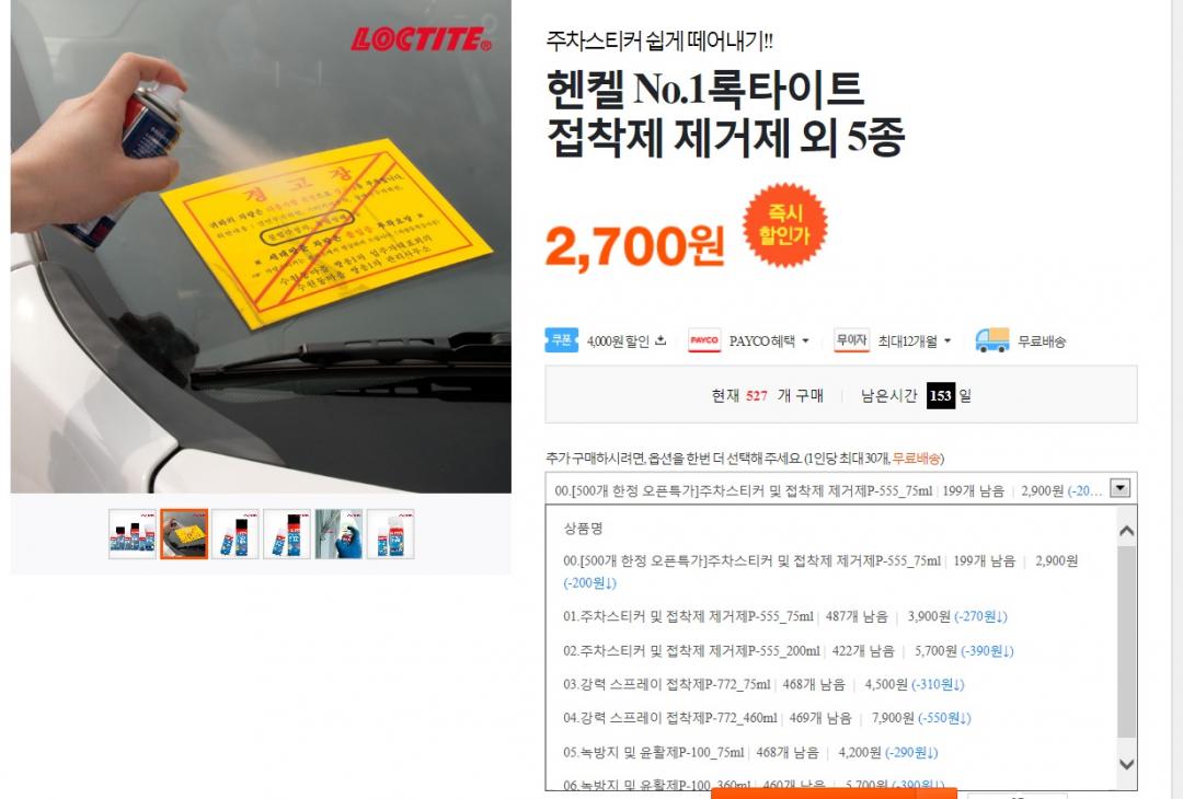 티몬에서 록타이트 주차 스티커 및 접착제 제거제 P-555(75ml)를 거의 배송비만 받고 이벤트 판매 하네요.