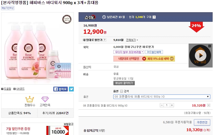 물론 이제품도 20% 쿠폰 먹여야 10,320원 나옵니다.