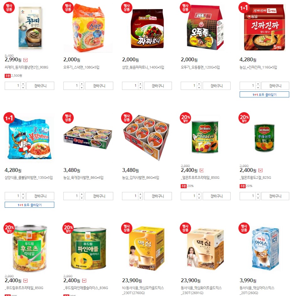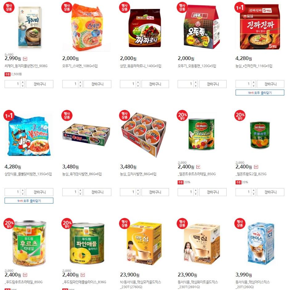 동치미 물냉면, 쿨불닭 볶음면, 진짜진짜 라면 등이 저렴합니다.