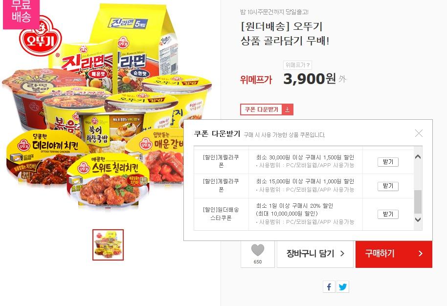 늘 12시전까지 쓰시면 될듯 합니다. 참깨라면 말고도 혹시나 위메프 원더배송에 살만한 물건 중 쿠폰 적용되는게