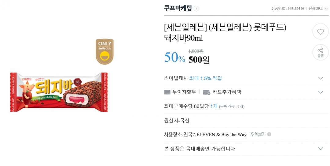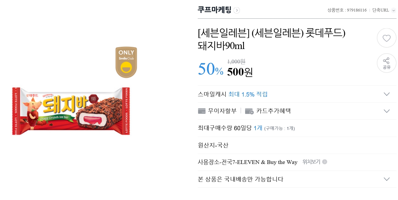 [G마켓 스마일클럽] 세븐일레븐 돼지바 90ml (500원/무료) > 이건어때