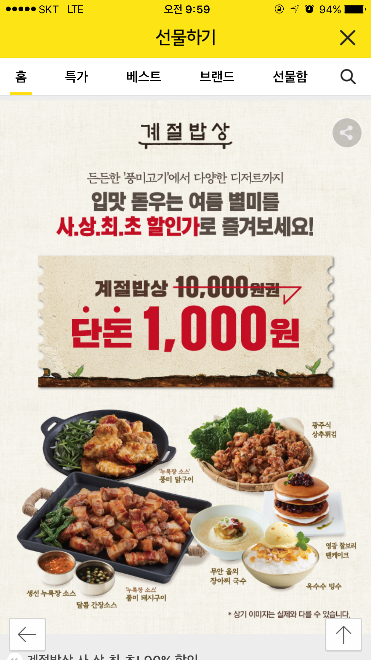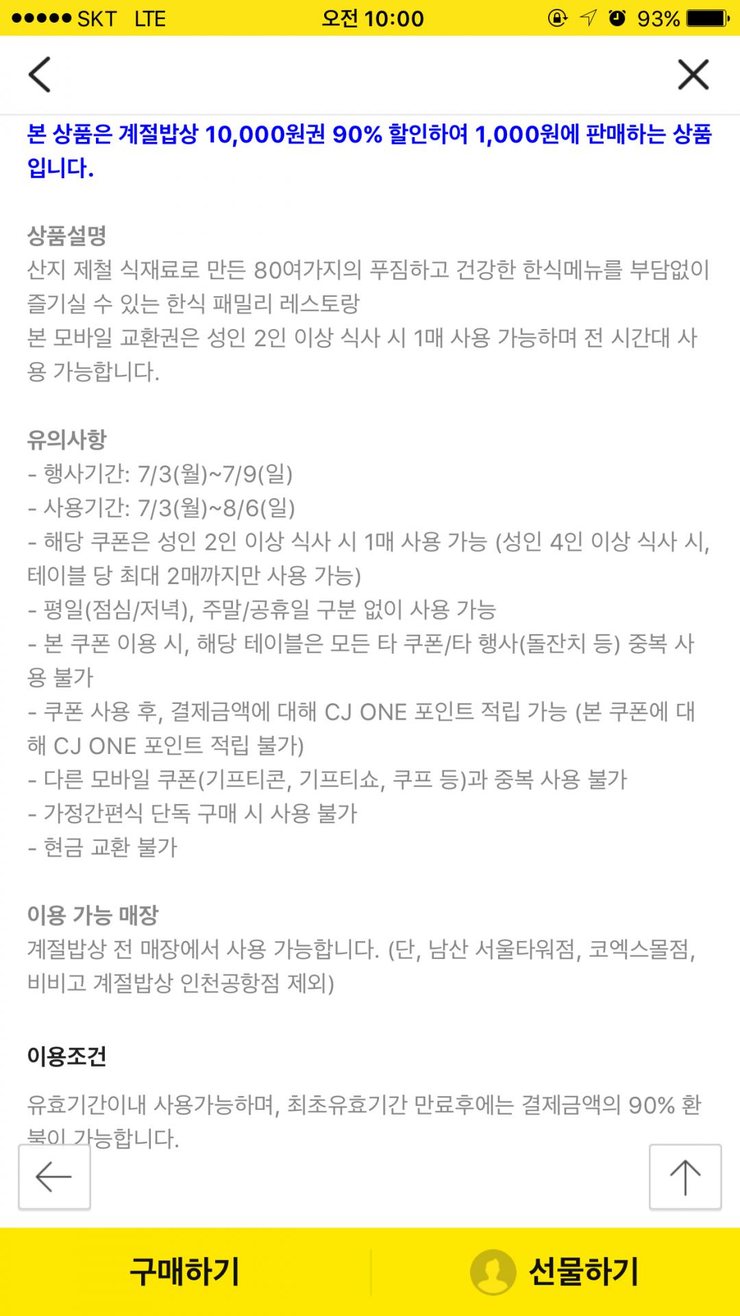 카카오톡 선물하가 계절밥상 1만원권 1,000원 > 이건어때