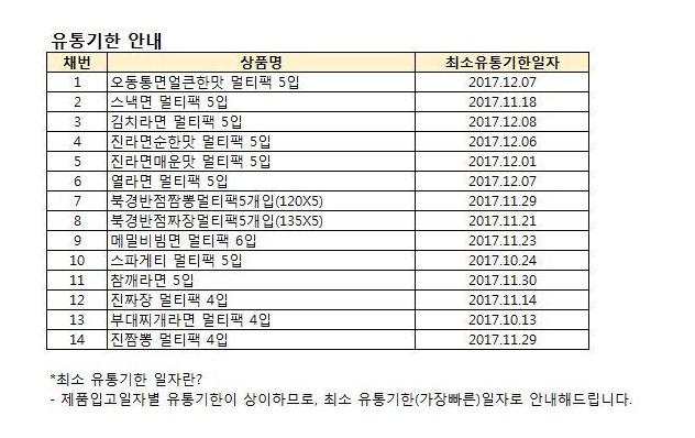 원 입니다 나머지 라면은 추가금있으니 참고하시구요 라면마다 유통기한이 있습니다 위에 사진에 각 라면별 유통