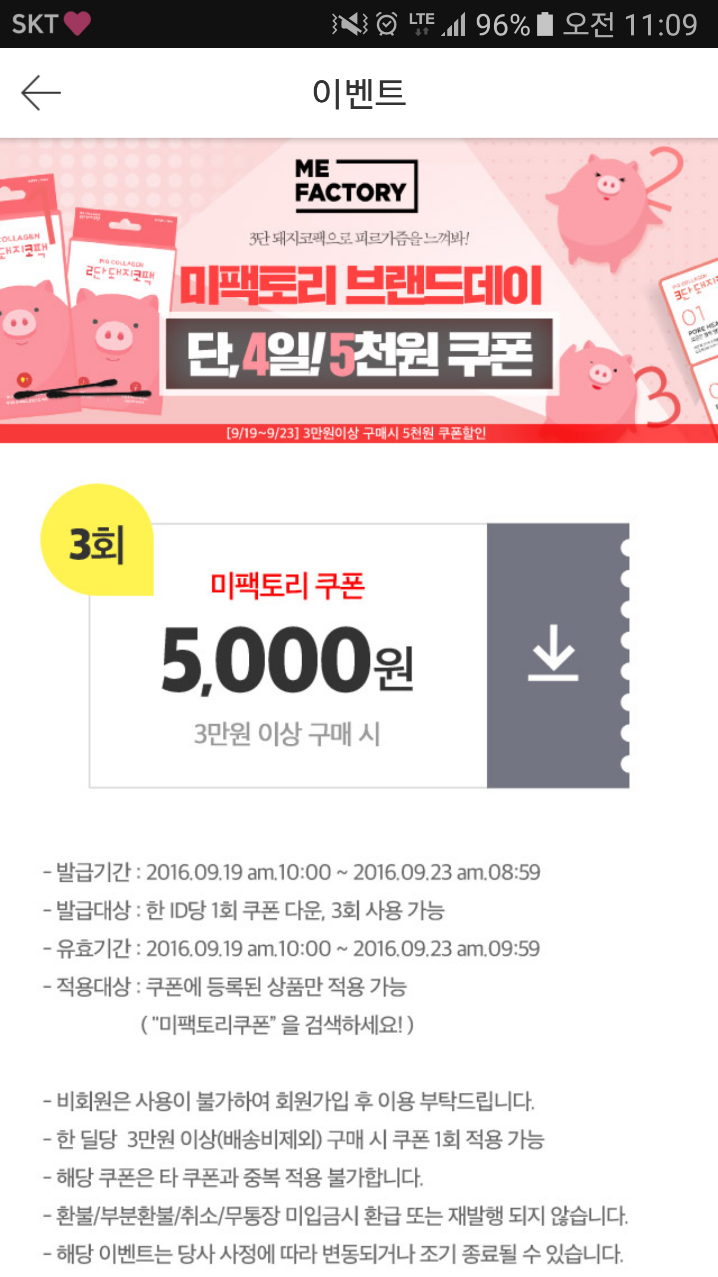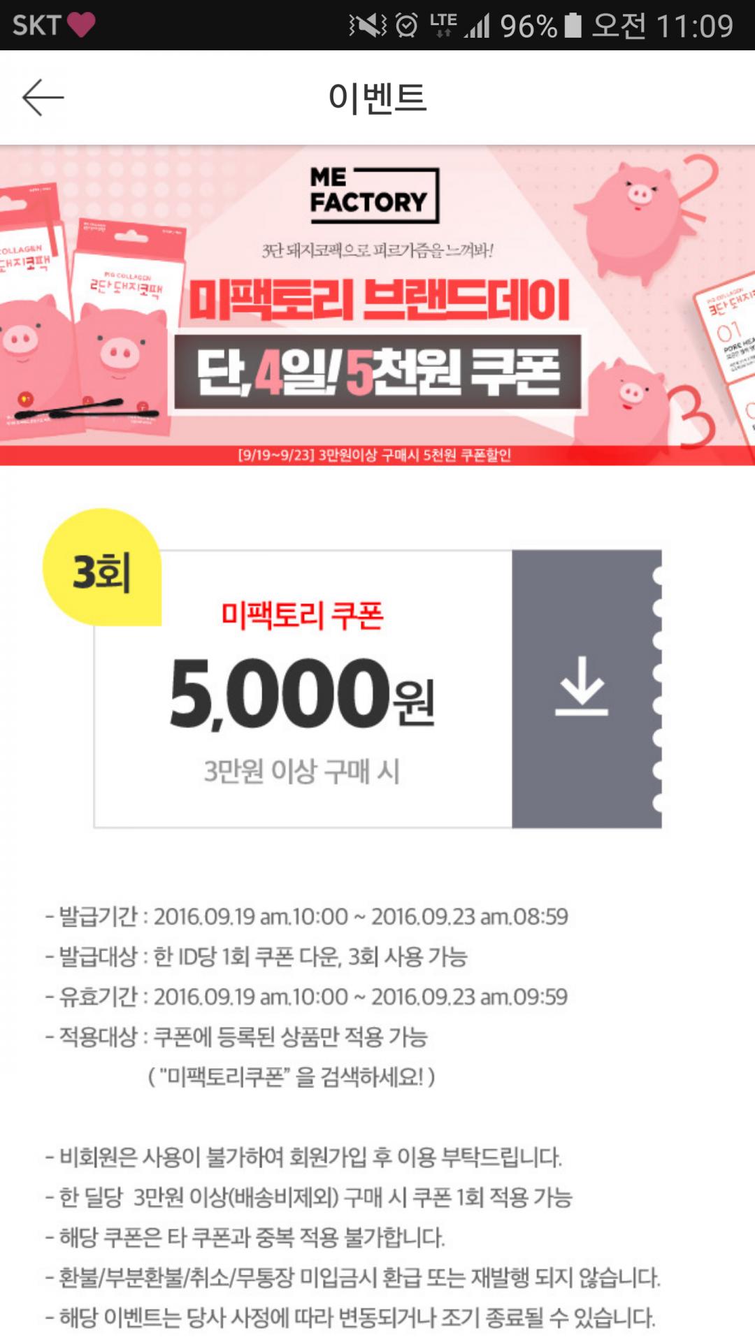 위메프 브랜드 쿠폰으로 3만 이상 구매시 5천원 할인이 있습니다.
