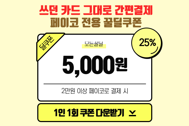 2만원이상 페이코 결제시 5000원 할인됩니다