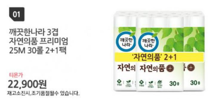 [티몬] 깨끗한나라 자연의 품 30롤 3팩 페이코 결제 대상 (17,900/무료)