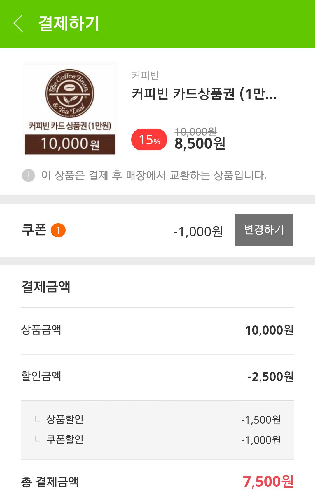 1만원권 8500원이나 1000쿠폰쓰면 7500원 25%네요.