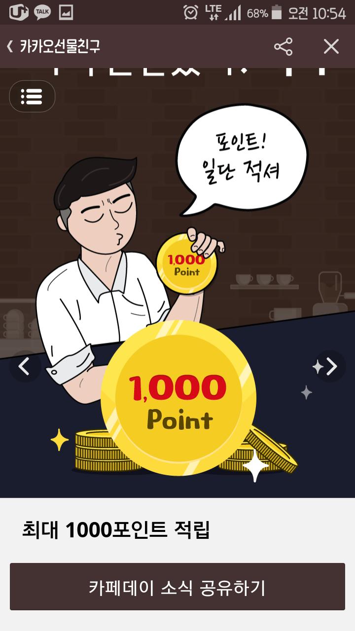 커피데이 공유하면 29일에 1000포인트도 준데요
