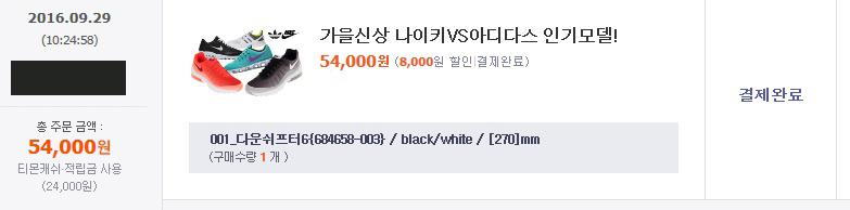 그래서 저는 24,000원은 적립금 쓰고, 3만은 국민카드로 27,000원 결제했어요.