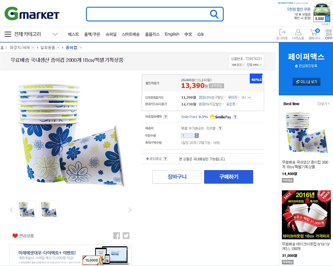 1년전 종이컵 12000원대에 4천개 주문 했던게 어끄제 같은데... 벌써 다썼내요..