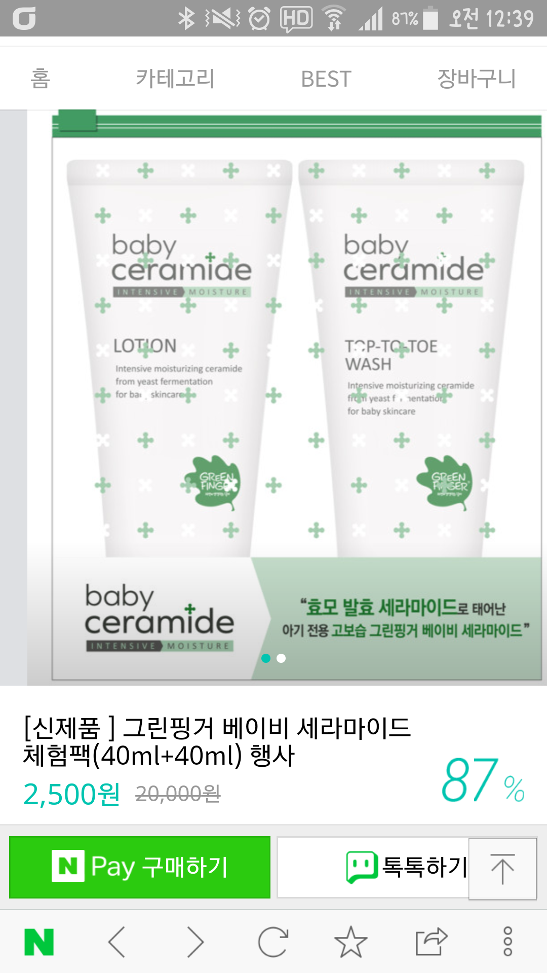 그린핑거 베이비 세라마이드 체험팩(40ml+40ml)
