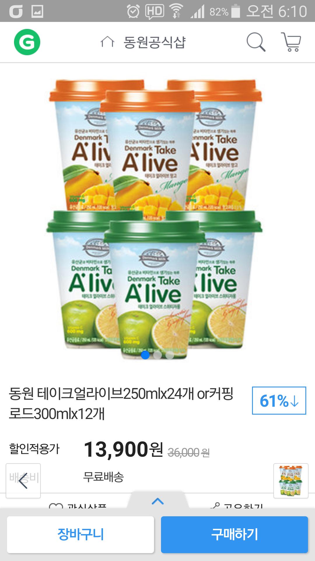 내만의 냉장고에 가끔 올라오는 테이크 얼라이브입니다. 얼마 전에 자몽 사서 먹어봤는데 시지 않고 달달한 게 맛있더군요.