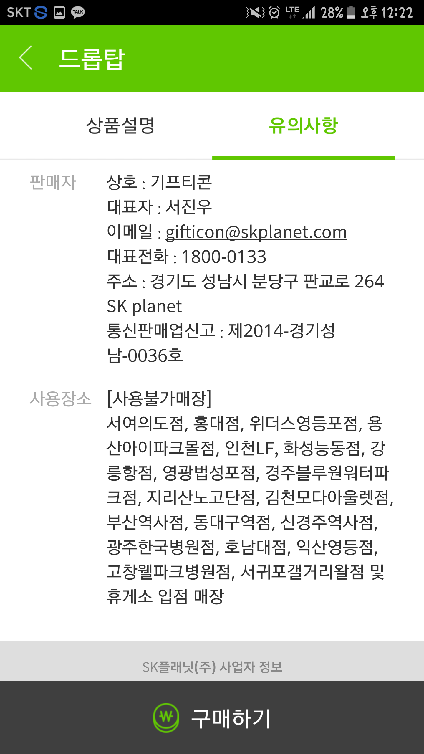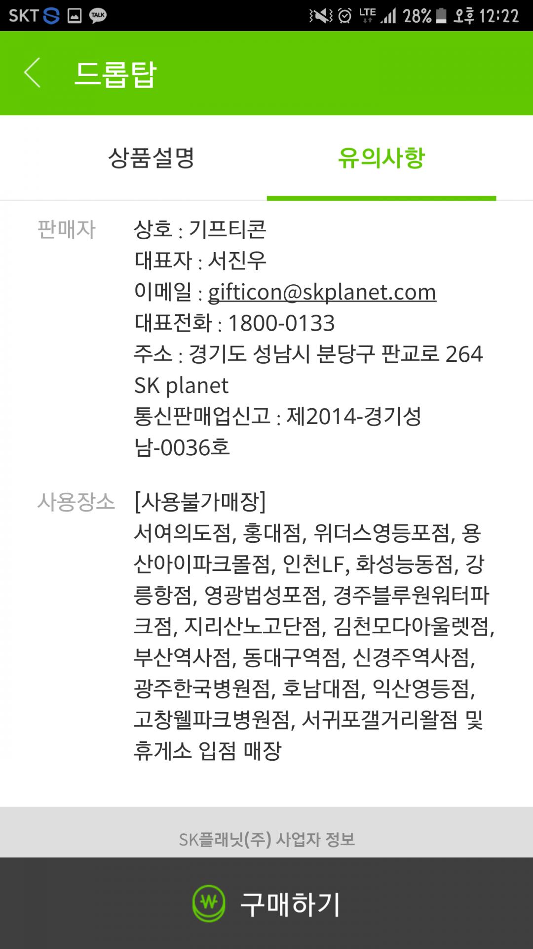 사용불가매장 확인하세요