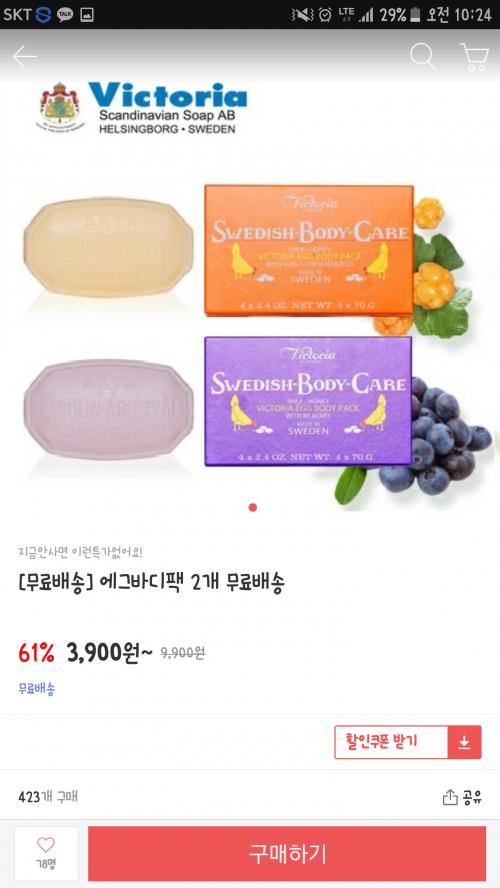 [위메프] 스웨덴 에그바디팩 2개 (3,900/무료) > 이건어때