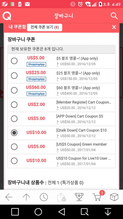 Qtalk라는 어플을 저 사이트에서 다운받으면 100포인트 주던데요. 결제단계에서 그거 차감하면 100포인트가 $1이더라구요. | ||