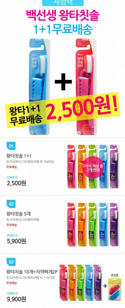 [위메프] 백선생 왕타칫솔 1+1 체험팩 (2,500/0)