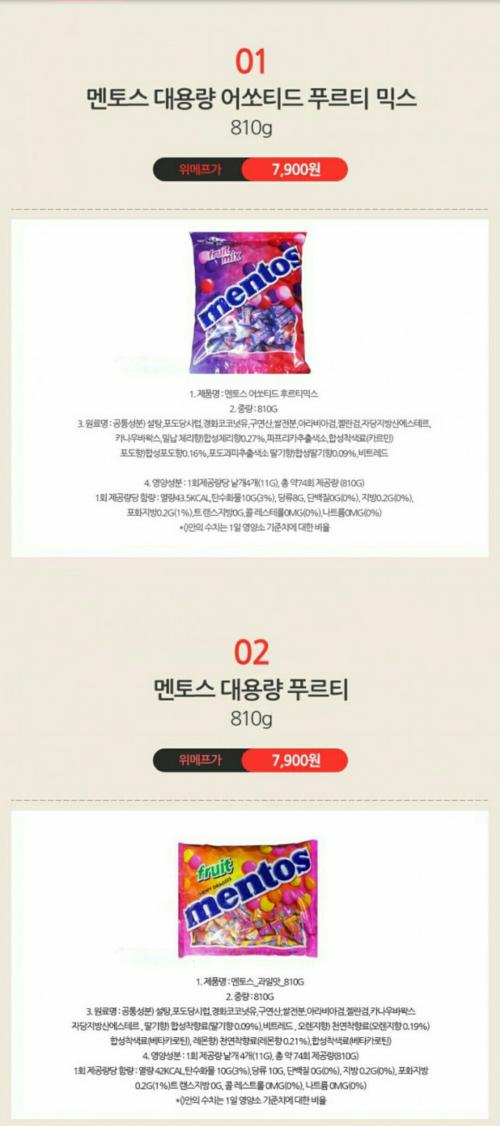 [위메프] 미니 멘토스 810G 대용량 (7,900/0) > 이건어때