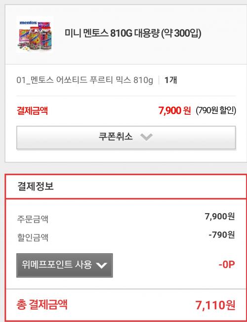 [위메프] 미니 멘토스 810G 대용량 (7,900/0)