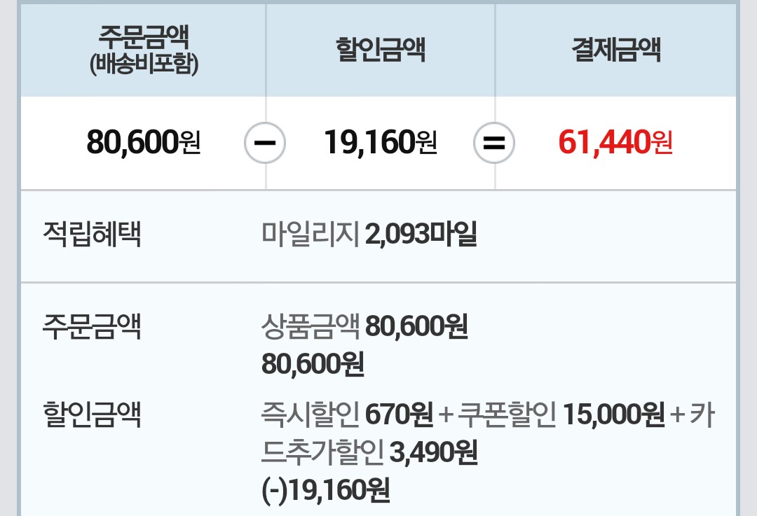 구매등급에 따라 마일리지 적용이 안되실 수도 있습니다~