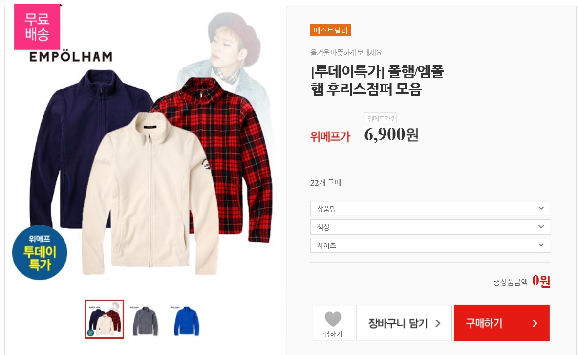 [위메프] 폴햄 후리스 점퍼 모음 (6,900원/무료) > 이건어때