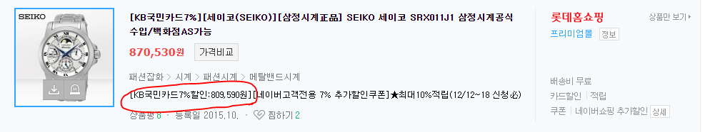 그럼 결제금액 809,590원에 세이코 문페이즈를 얻고 3만원의 적립금이 생기며 카드빚이 809,590원 생깁니다.
