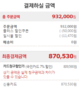 본 결제에는 일시불 결제를 위한 넉넉한 잔고와, KB 카드가 필요합니다.