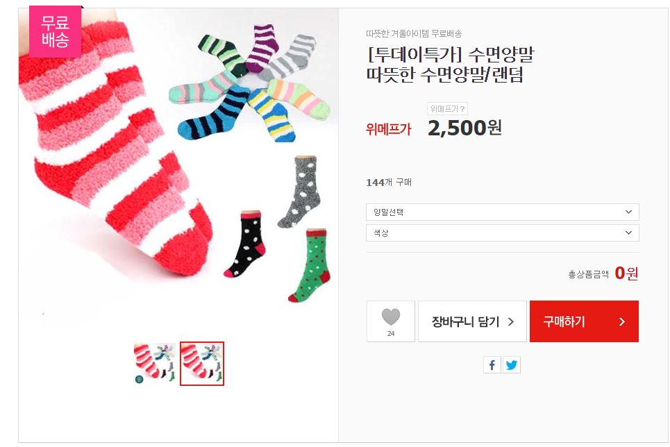 [위메프] 수면양말 3set (2,500/무료)