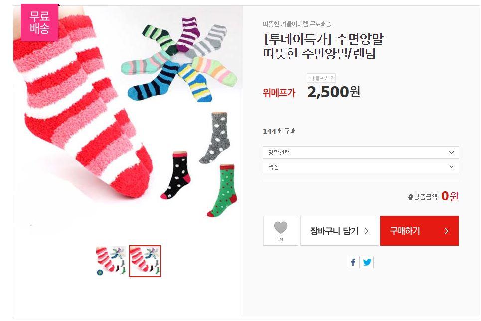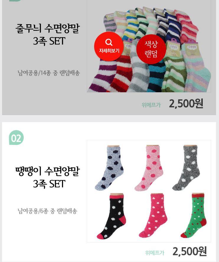 [위메프] 수면양말 3set (2,500/무료) > 이건어때