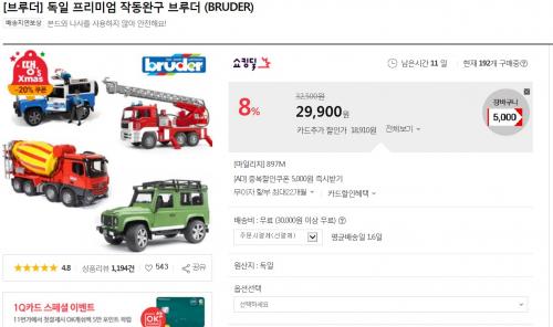 연말 선물시즌이라 독일 완구 브루더 이벤트로 저렴하게 구매할 수 있네요.