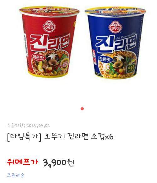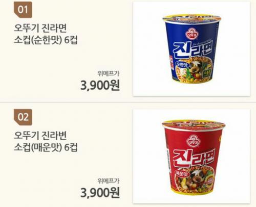[위메프]오뚜기 진라면 소컵x6 (3,900/0) > 이건어때